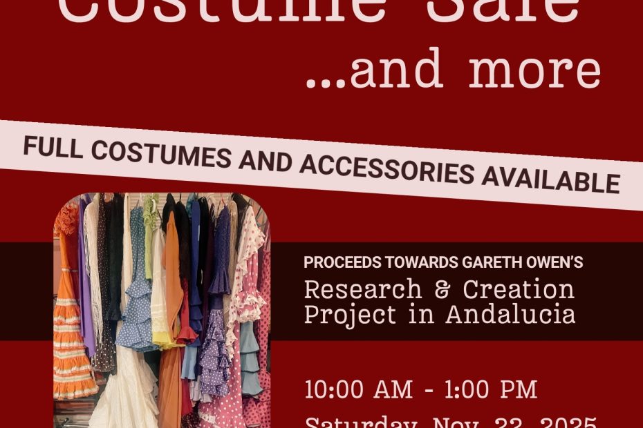 Full costumes and accessories available! Proceeds towards Gareth Owen’s Research & Creation project in Andalucia. Credit card, e-transfer, and cash accepted. Date: Saturday, November 22,… Read More »Flamenco Fashion Show Costume Sale